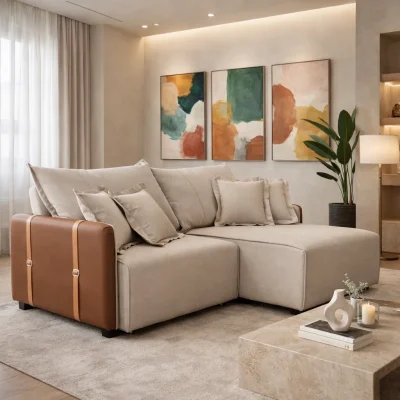 SOFÁ DIJON RETRATIL E RECLINÁVEL 2,20M – LINHO AREIA