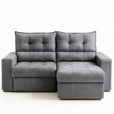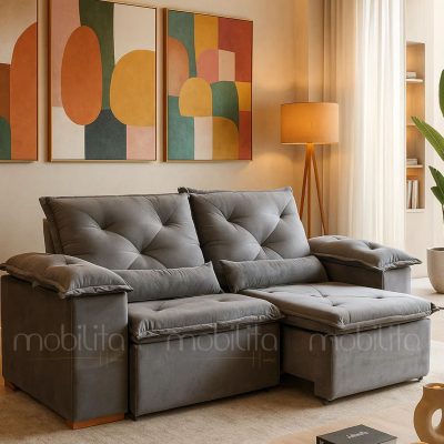 SOFÁ UNO (1,80M) 3 LUGARES RETRÁTIL E RECLINÁVEL – VELUDO GRAFITE