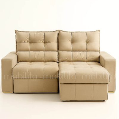 SOFÁ UNO (1,80M) 3 LUGARES RETRÁTIL E RECLINÁVEL – VELUDO BEGE