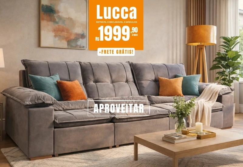 SOFÁ LUCCA (2,00M) 3 LUGARES RETRÁTIL E RECLINÁVEL – VELUDO CINZA
