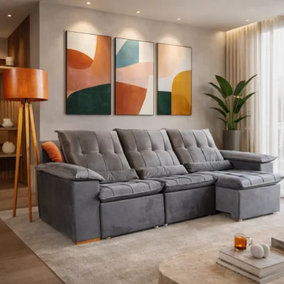 O Sofá Palermo é um estofado elegante e funcional de 2,50 m com 4 lugares retrátil e reclinável, perfeito para transformar sua sala de estar. Com design contemporâneo, braços estruturados e encosto anatômico, oferece conforto absoluto e versatilidade em momentos de descanso e confraternização. Seu acabamento em veludo realça a sofisticação do ambiente, aliando estilo e conforto para sua casa.