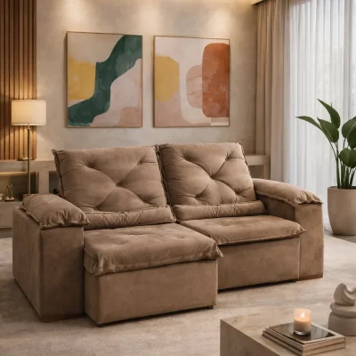 SOFÁ TURIM (2,00M) 3 LUGARES RETRÁTIL E RECLINÁVEL – VELUDO BEGE