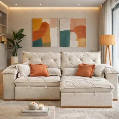 Sofá Diamante Retrátil e Reclinável 2,00m 3 lugares – veludo bege