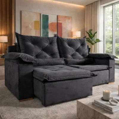 Sofá Lucca (2,75m) 5 Lugares Retrátil e Reclinável – Veludo Grafite