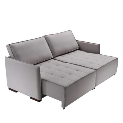 SOFÁ NEW DOMENICO (2,00M) LIVING RETRÁTIL & VERSÁTIL COM ALMOFADAS SOLTAS – LINHO CINZA