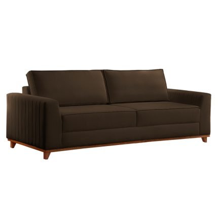 Importante: Verifique as dimensões do produto (na seção “Ficha Técnica”) e certifique-se que o percurso que ele fará até o local de uso permite sua passagem. A Mobillita não se responsabiliza pela desmontagem e montagem do sofá caso o mesmo não passe em corredores, não suba escadas ou não entre em elevadores, assim como não realizamos içamentos do sofá.UGARES, BASE E PÉ EM MADEIRA COM ALMOFADAS SOLTAS - VELUDO MARROM