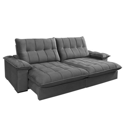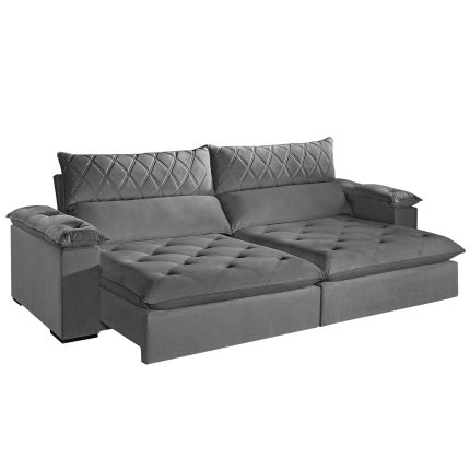 SOFÁ VICENZO (2,30M) RETRÁTIL E RECLINÁVEL – VELUDO GRAFITE