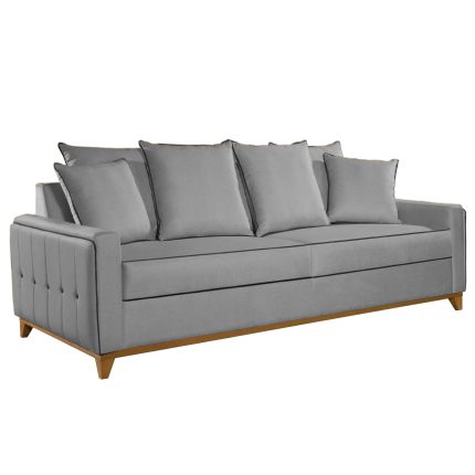 SOFÁ LIVING AMSTERDÃ (2,30M), BASE E PÉ EM MADEIRA COM ALMOFADAS SOLTAS - LINHO CINZA