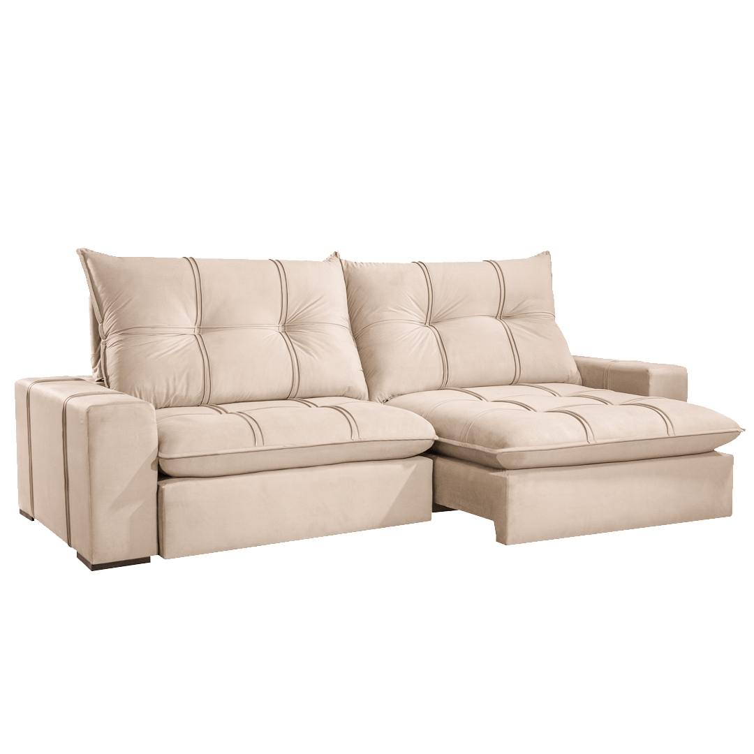 SOFÁ LISBOA (2,10M) RETRÁTIL E RECLINÁVEL – VELUDO BEGE