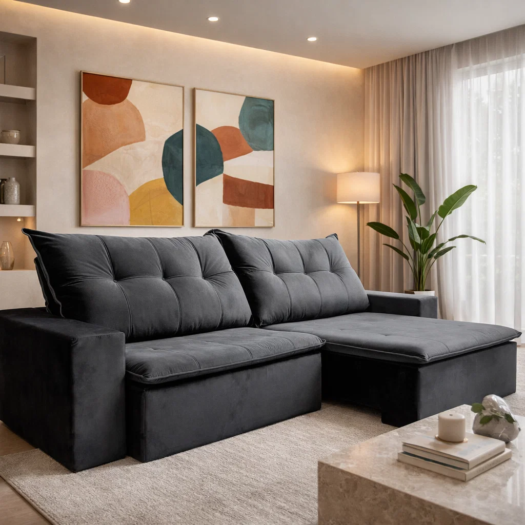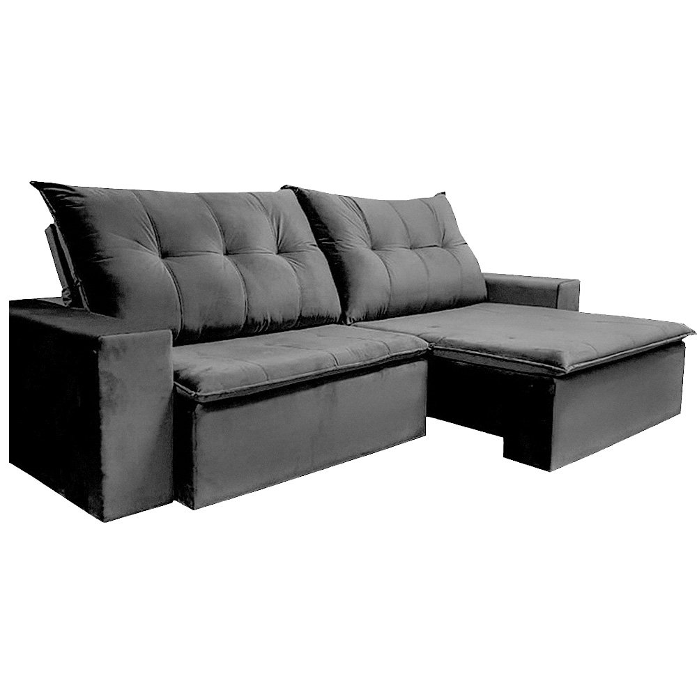 SOFÁ ATHENAS (2,50M) RETRÁTIL E RECLINÁVEL 3 LUGARES – VELUDO GRAFITE