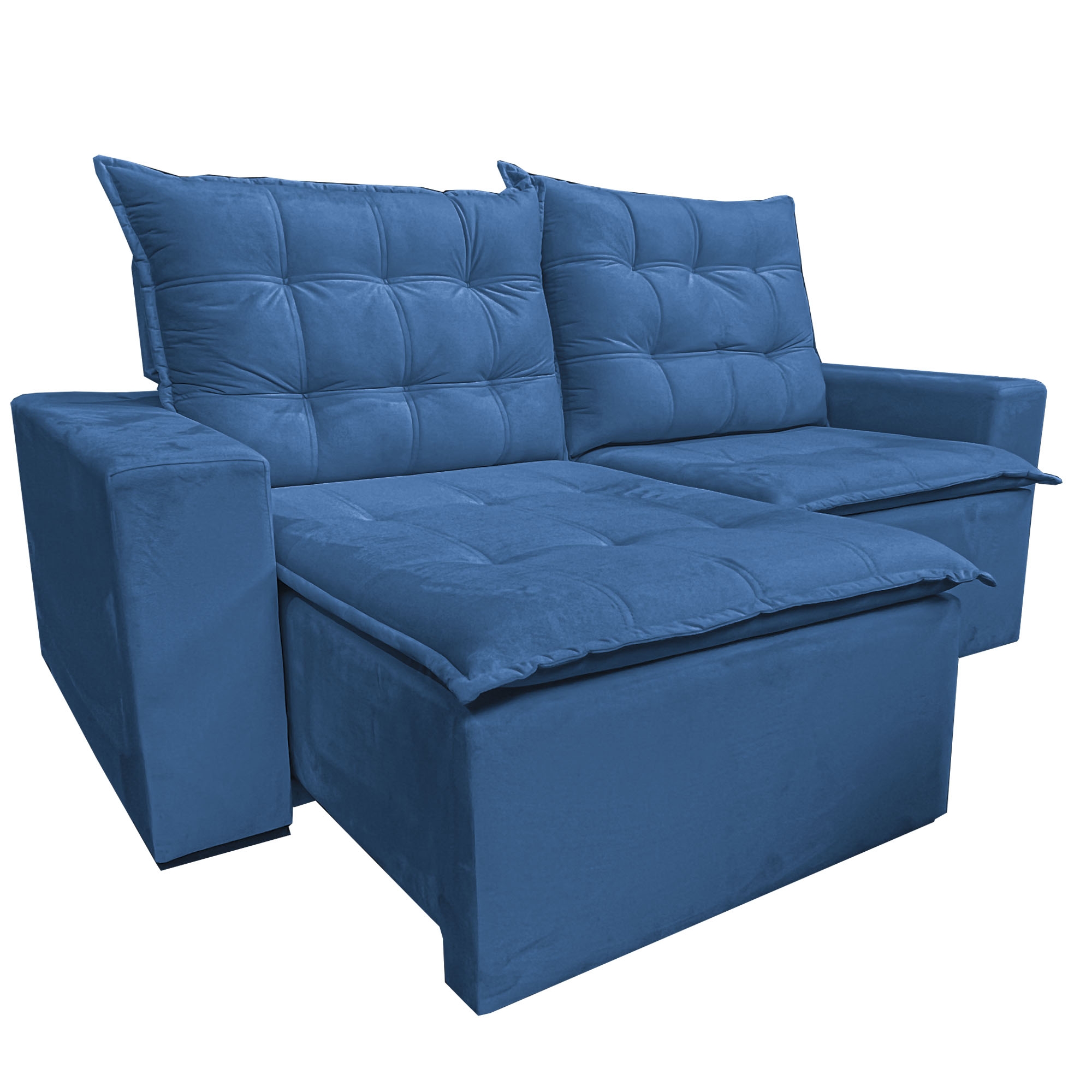 SOFÁ CANADÁ (2,00M) 3 LUGARES RETRÁTIL E RECLINÁVEL – VELUDO AZUL