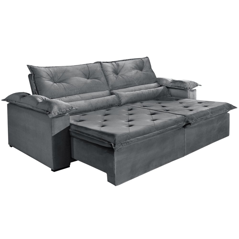 SOFÁ LISBOA (2,30M) RETRÁTIL E RECLINÁVEL – VELUDO PRATA