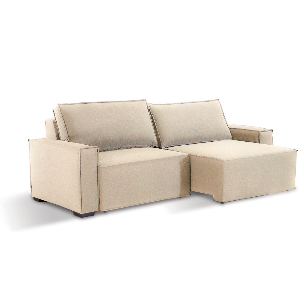 SOFÁ FELIPO (1,90M) 2 LUGARES RETRÁTIL C/ ALMOFADAS SOLTAS – VELUDO BEGE