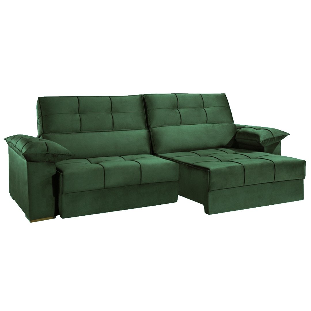 SOFÁ LISBOA (2,50M) RETRÁTIL E RECLINÁVEL – VELUDO VERDE