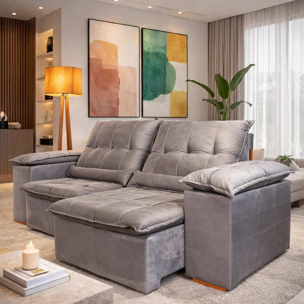 Design compacto com conforto de sofá grande. Solução ideal para espaços urbanos e ambientes planejados.