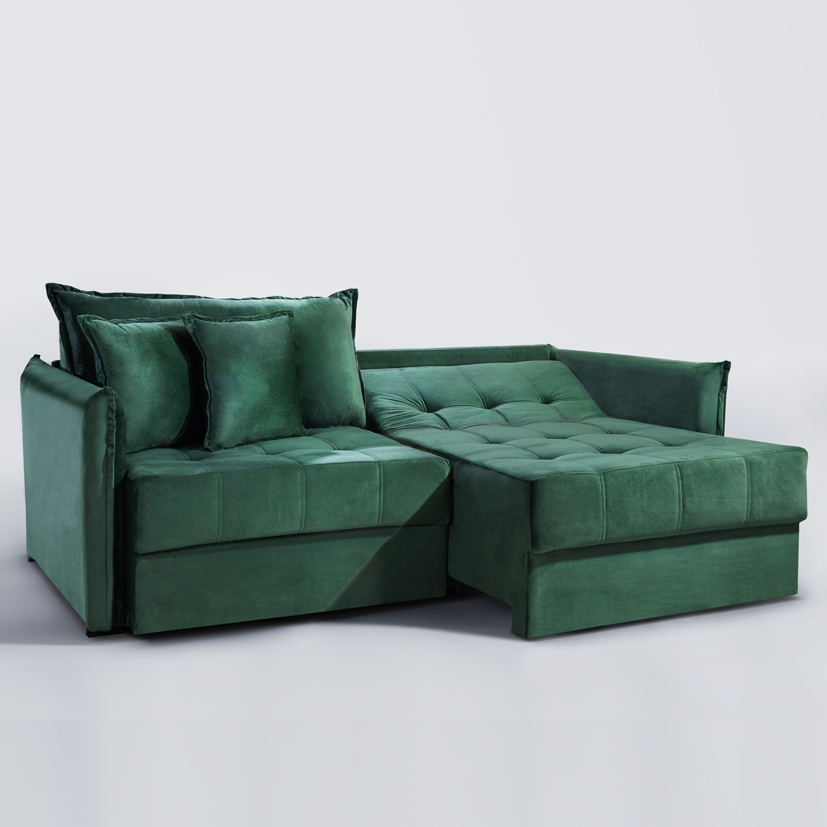SOFÁ MILANNO (2,20) LIVING VERSÁTIL & RETRÁTIL COM ALMOFADAS SOLTAS – VELUDO VERDE