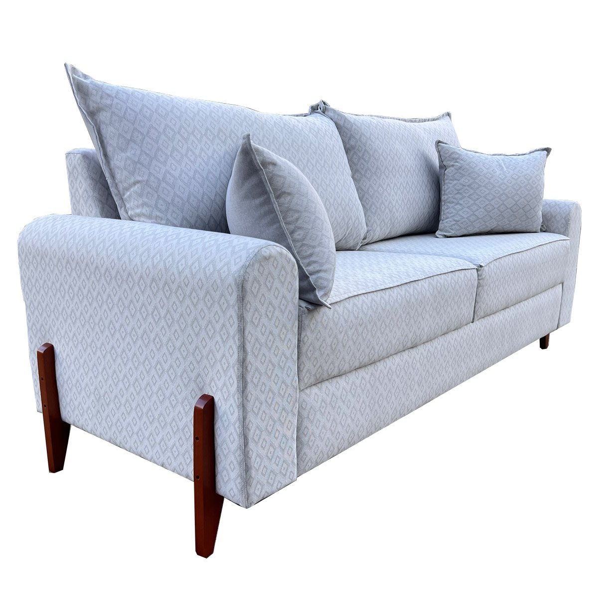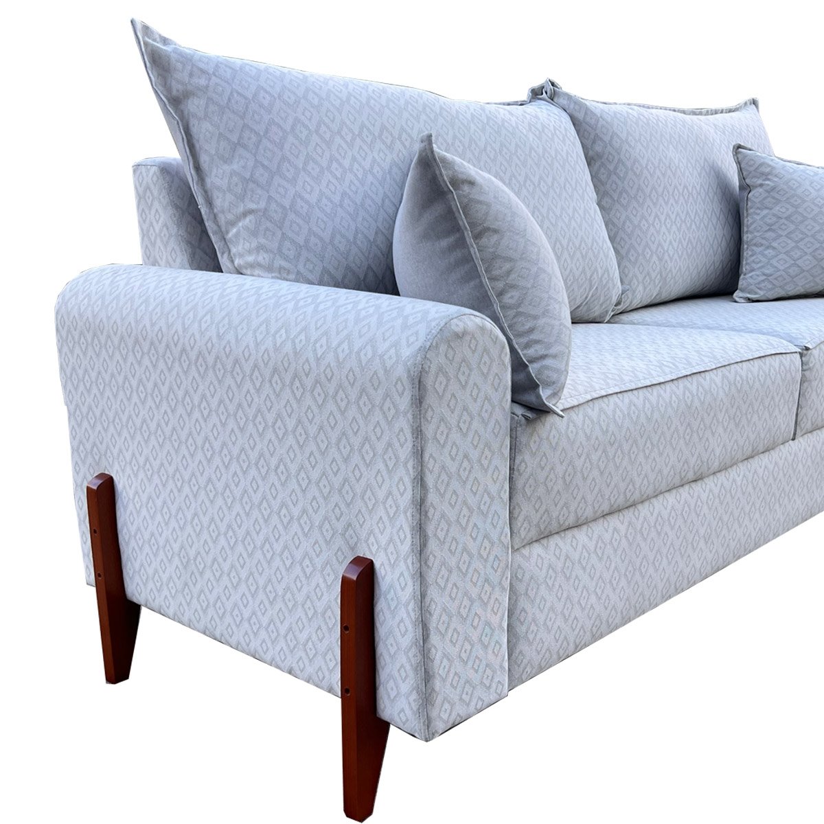 SOFÁ LIVING NICE 3 LUGARES, BASE E PÉ EM MADEIRA COM ALMOFADAS SOLTAS – LINHO