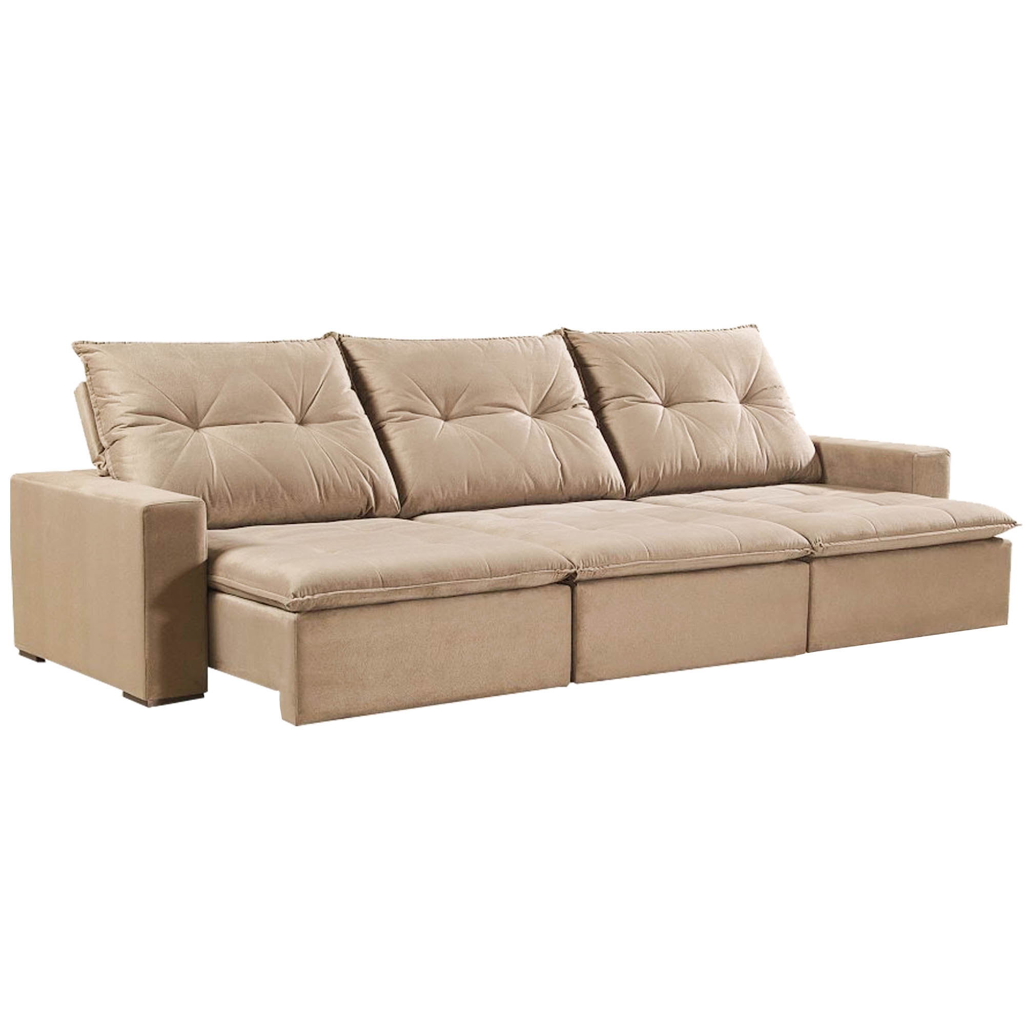 SOFÁ NOVARA (3,20M) 6 LUGARES RETRÁTIL E RECLINÁVEL – VELUDO BEGE