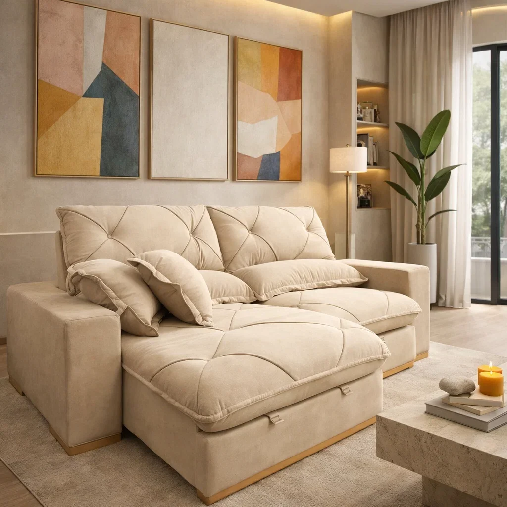 Ideal para quem busca um sofá protagonista, com dimensões generosas e ergonomia pensada para o relaxamento absoluto.