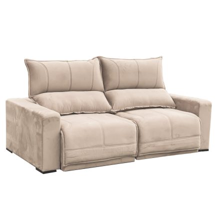 Com 1,80m de largura, é perfeito para ambientes planejados, apartamentos e salas menores. O revestimento em veludo bege e as linhas elegantes tornam o Uno uma peça de destaque na decoração.
