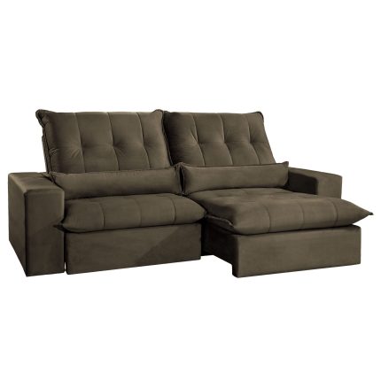 SOFÁ UNO (1,80M) 3 LUGARES RETRÁTIL E RECLINÁVEL – VELUDO MARROM