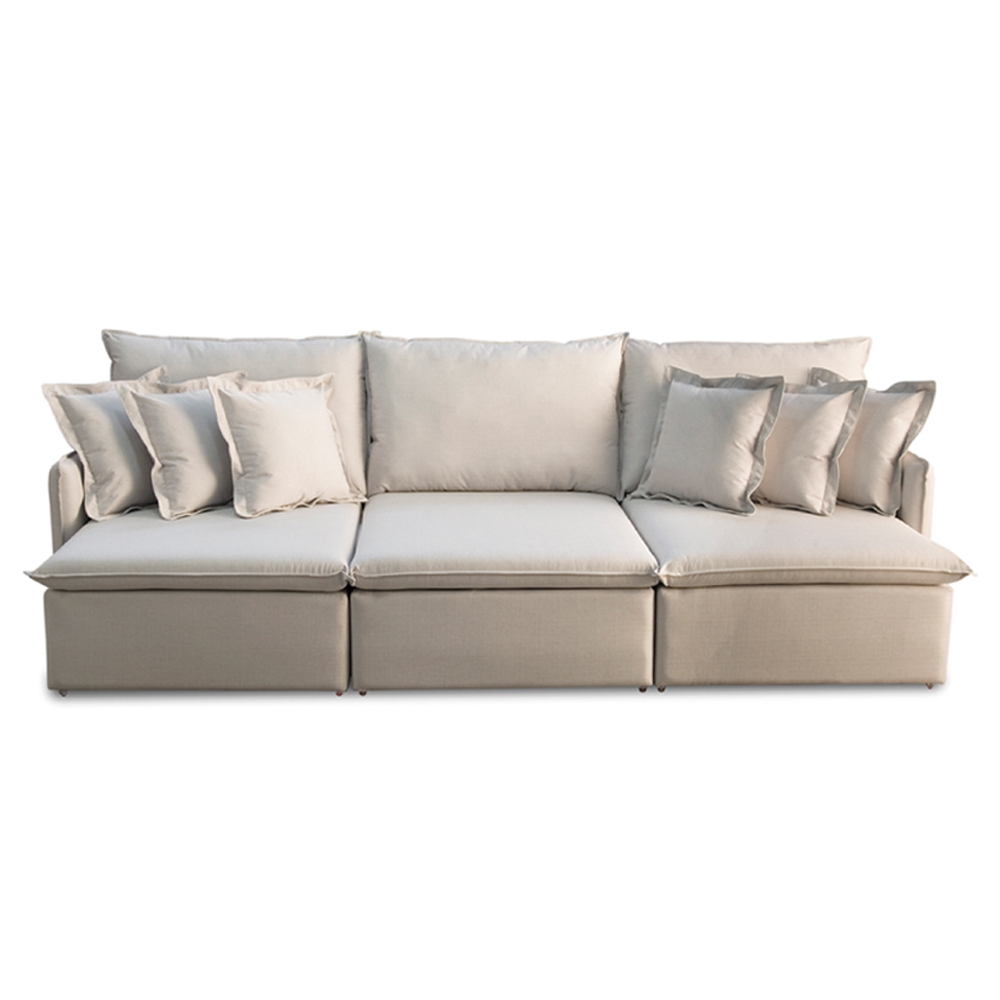 SOFÁ VENETTO (3,20) SEM CAIXA – LIVING VERSÁTIL & RETRÁTIL COM ALMOFADAS SOLTAS – VELUDO GELO