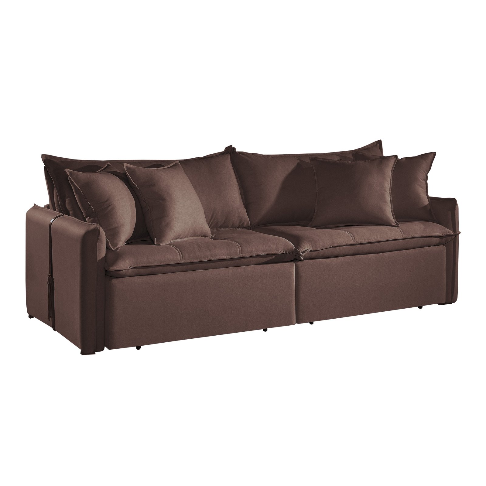 SOFÁ CAMA SEVILHA (2,20) SEM CAIXA – LIVING & RETRÁTIL COM ALMOFADAS SOLTAS – VELUDO MARROM